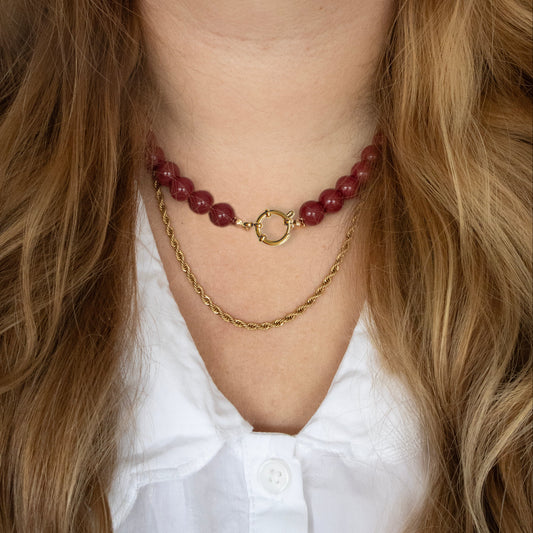 BEADS KETTING BORDEAUX/GOUD