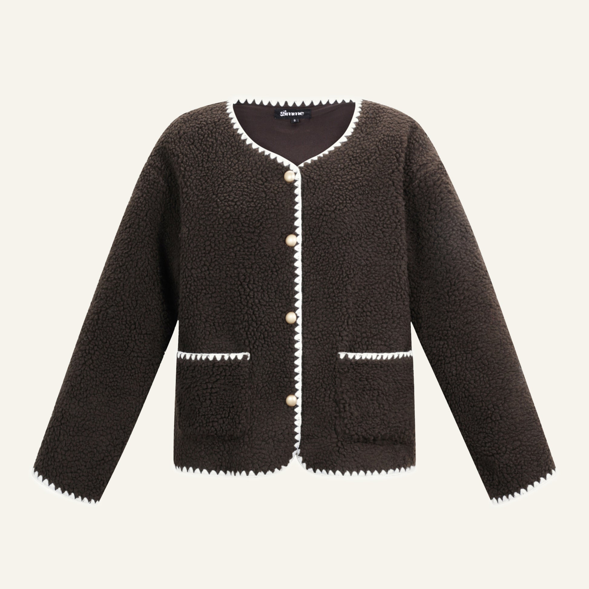 The FLUFFY JACKET is an elegant statement piece with a warm, luxurious feel. Crafted from a soft, teddy-like fabric that feels comfortable and is perfect for cooler days. The contrasting piping along the edges gives the jacket a refined and modern look, while the button closure and subtle V-neck create a timeless silhouette. Thanks to its straight fit and practical pockets, the ZOE JACKET is both stylish and functional. Wear it casually over a knit or dress it up with a blouse or dress. A versatile jacket that effortlessly elevates any outfit. 🤍