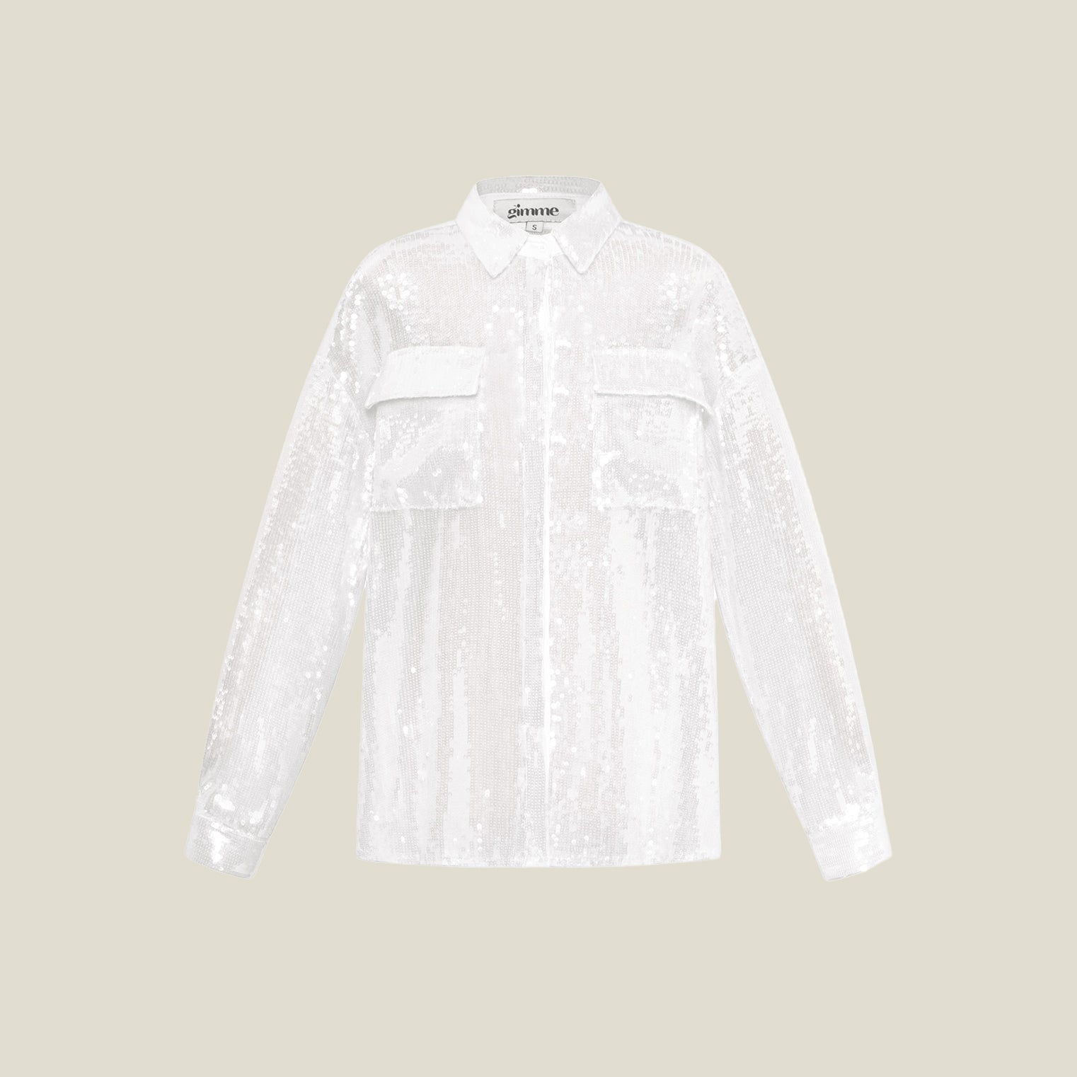 The GLITTER BLOUSE is the perfect blend of class and sparkle. The subtle glitter texture gives this blouse a luxurious look, while the classic collar and chest pockets create a timeless silhouette.