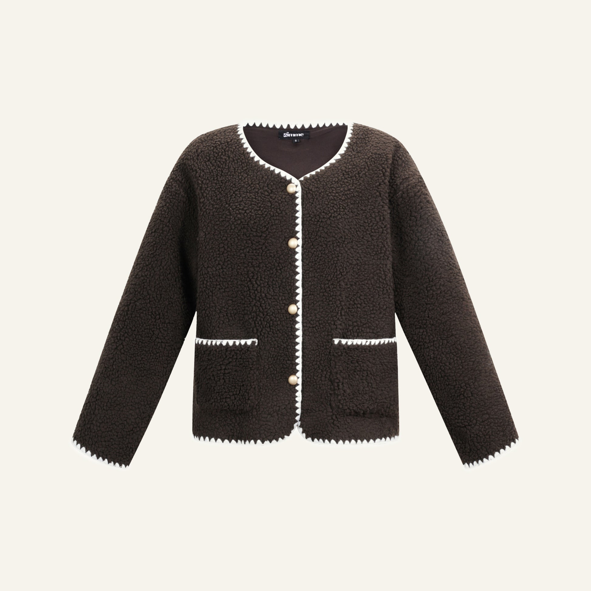 De FLUFFY JACKET is een elegante statement piece met een warme, luxe uitstraling. Gemaakt van een zacht, teddy-achtig materiaal dat comfortabel aanvoelt en perfect is voor koelere dagen. De contrasterende bies langs de randen geeft het jasje een verfijnde en moderne look, terwijl de knoopsluiting en subtiele V-hals zorgen voor een tijdloos silhouet.