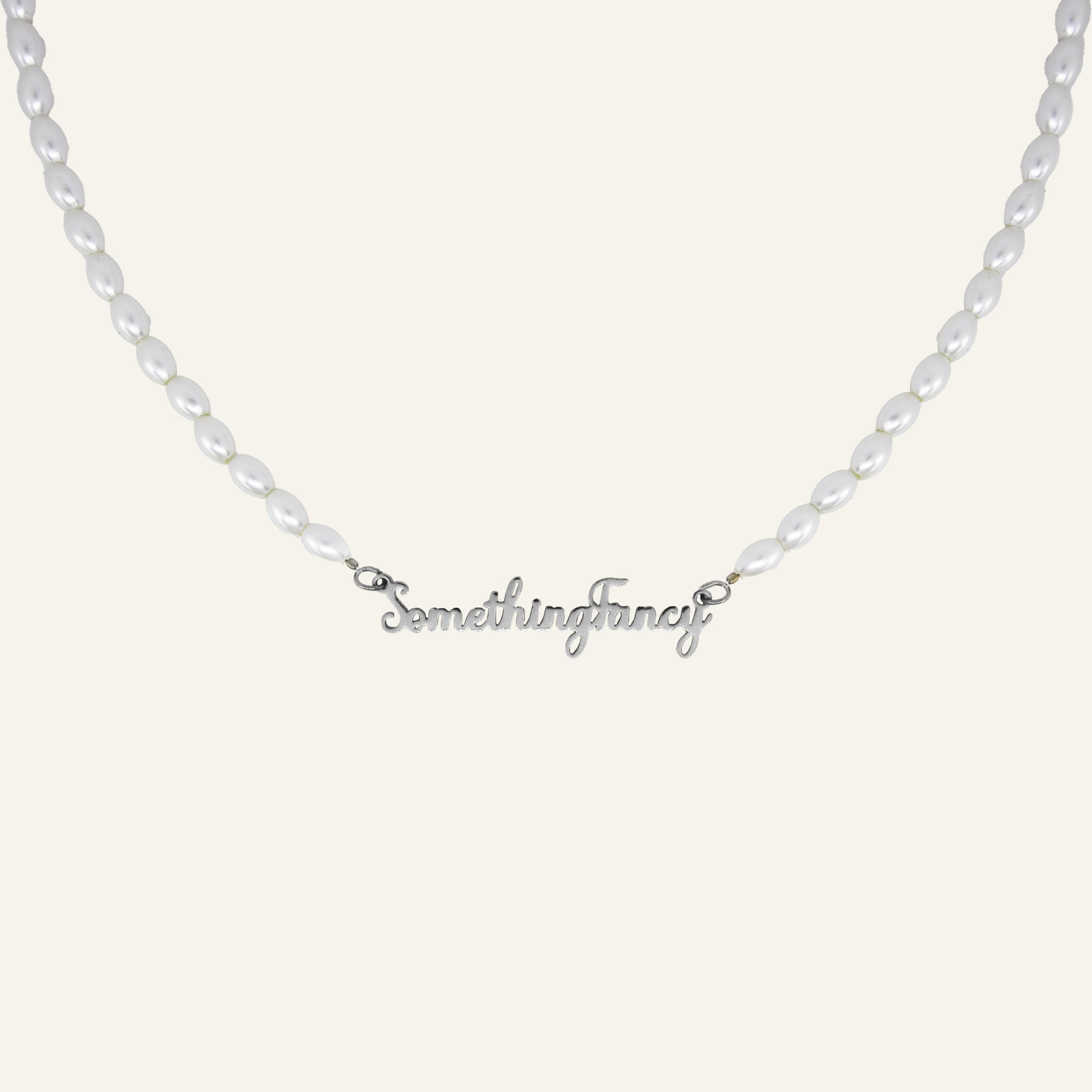 De ketting combineert elegante parels met een zilverkleurige naam in sierlijk lettertype, een echte eyecatcher met een persoonlijke touch! 🫶🏻